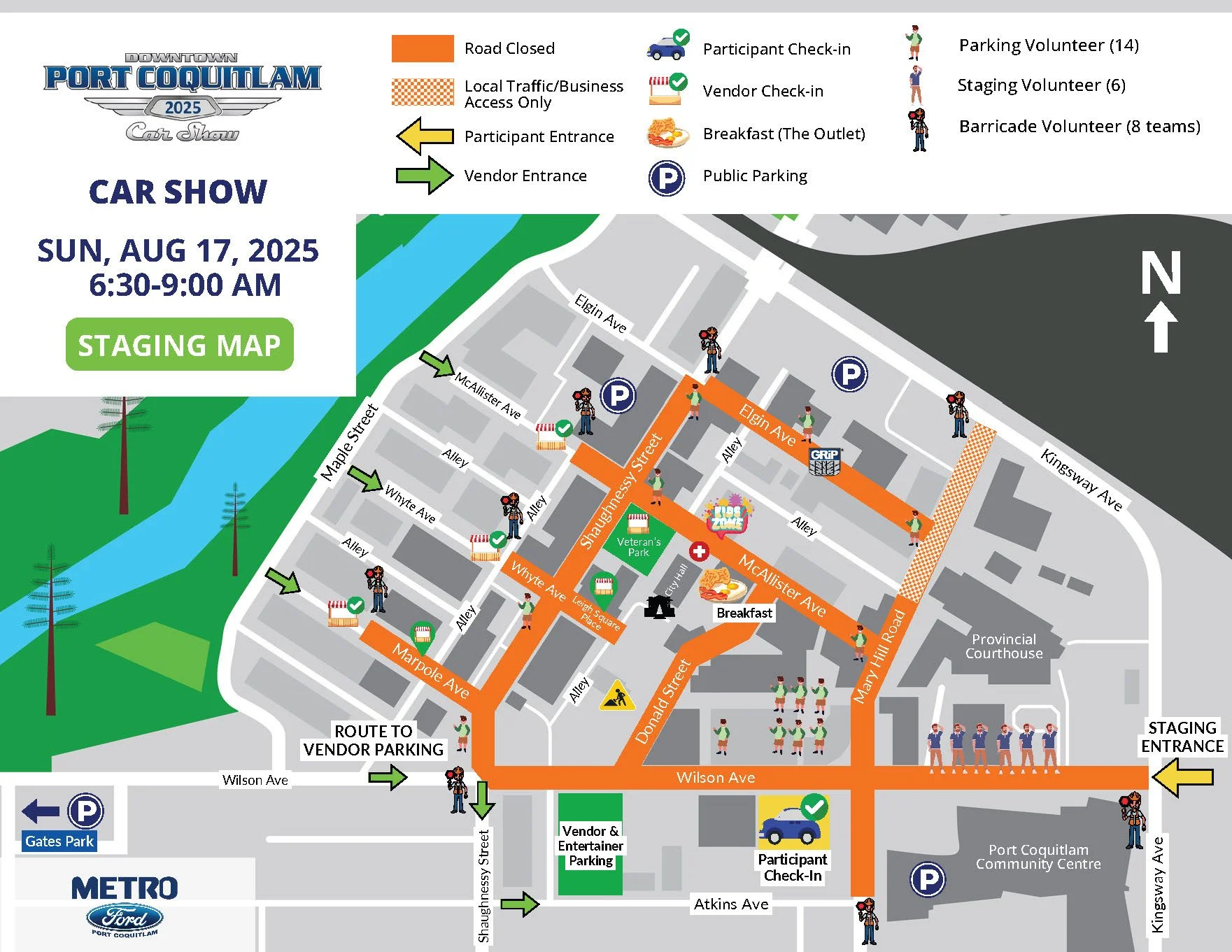 PLEASE NOTE: This information is for registered participants. For information on registration, visit our registration page or contact Karen Grommada at karen@portcoquitlamcarshow.ca or 604-632-4803