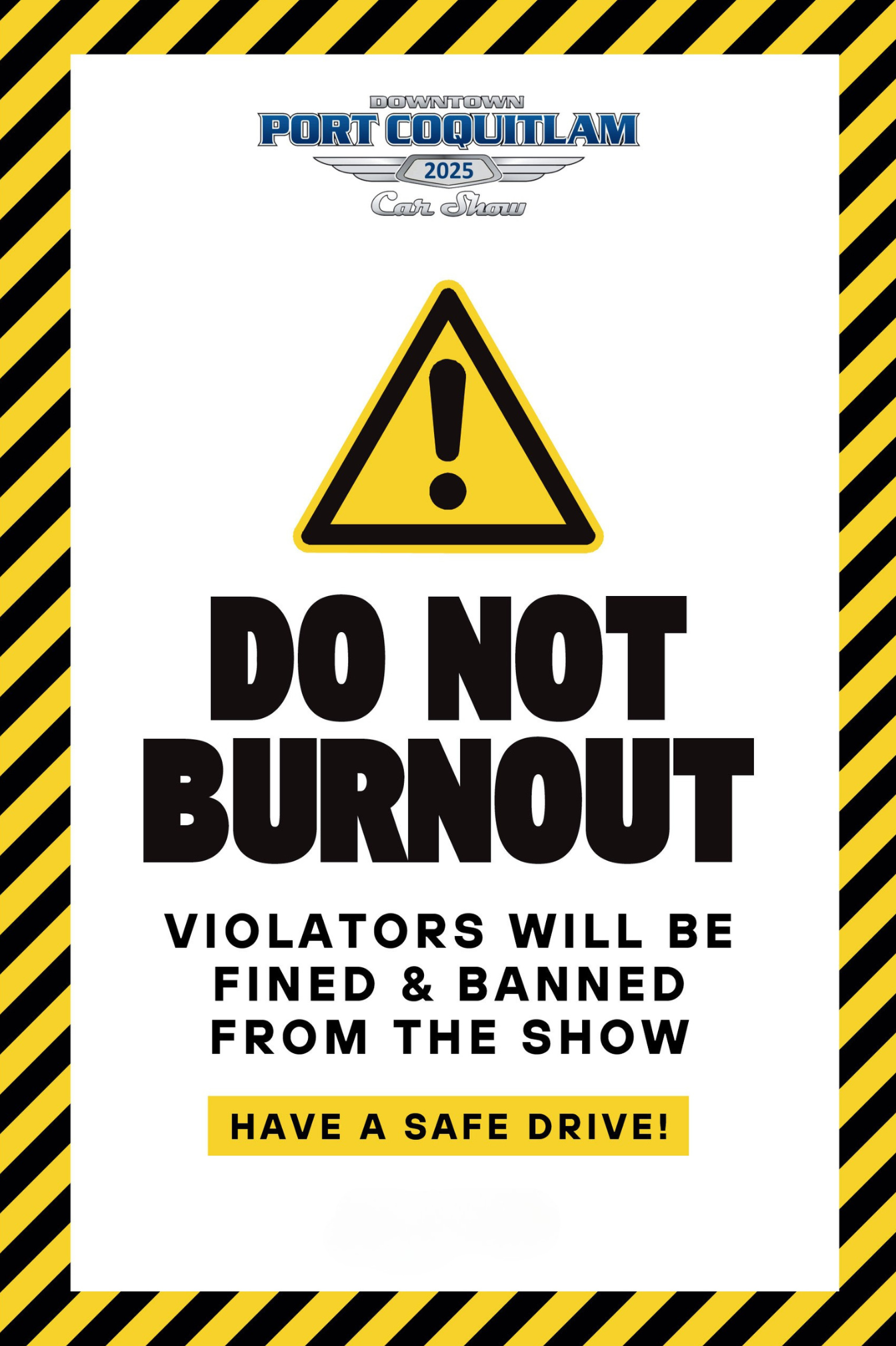 Port Coquitlam Bylaw will be present on the route and anyone engaging in burnouts or dangerous driving will be fined and banned from all future shows.